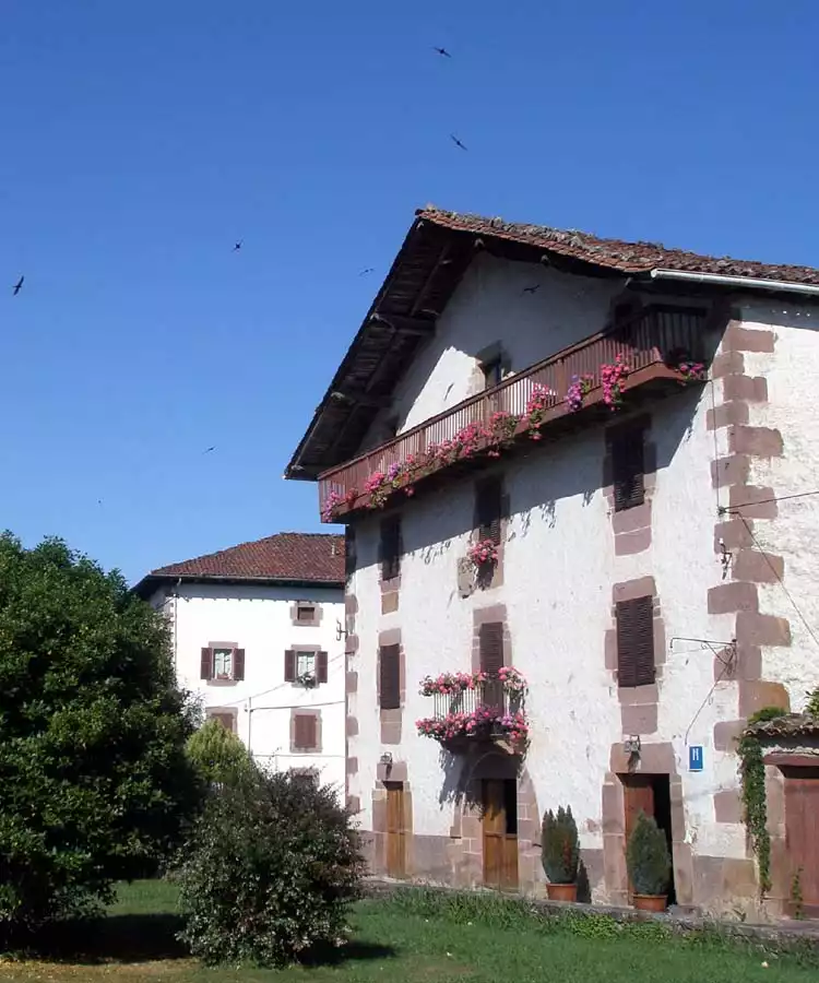 Alojamiento rural asentado en una casa tradicional del norte de Navarra, uno de los 66 Mayorazgos que existieron en Navarra y origen del Virrey de Argentina Juan José Bertiz y Salcedo como indica su escudo de armas.